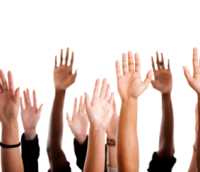 Several raised hands.