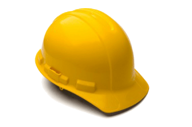 A hard hat as worn by construction workers.