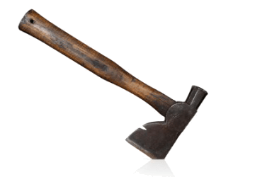 A wooden handled hatchet.