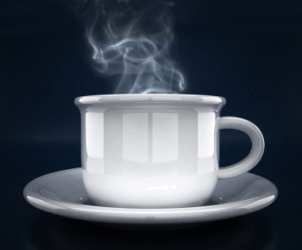 The heat from this cup of hot water produces steam.