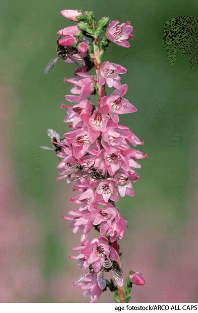 heath·er AHD[hĕY“ər] D.J.[ˈheðə]K.K.[ˈhɛðɚ]n.(名词) heatherCalluna vulgaris- A low-growing Eurasian shrub(Calluna vulgaris) growing in dense masses and having small evergreen leaves and clusters of small, bell-shaped pinkish-purple flowers. Also called ling 2石南属植物:一种长于欧亚的低矮的密集聚生(帚石南 帚石南属) 灌木,长有小且常绿的叶子和小簇生、铃状的粉紫色花 也作 ling2