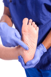 A doctor holding his patients heel.