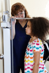 A nurse measures a child's height.