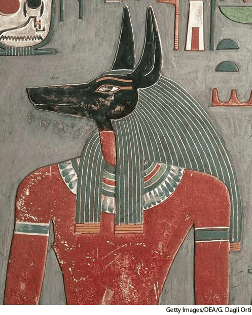1. A jackal-headed Egyptian god and the son of Osiris. He conducted the dead to judgment.导引亡灵之神,豹头人身神:豹头人身的希腊神,俄赛里斯之子。他引导死者去接受审判