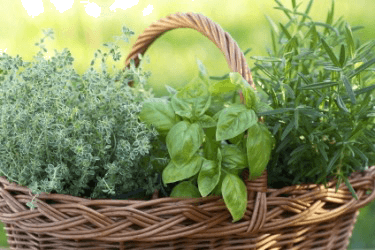 A basket of fresh herbs.