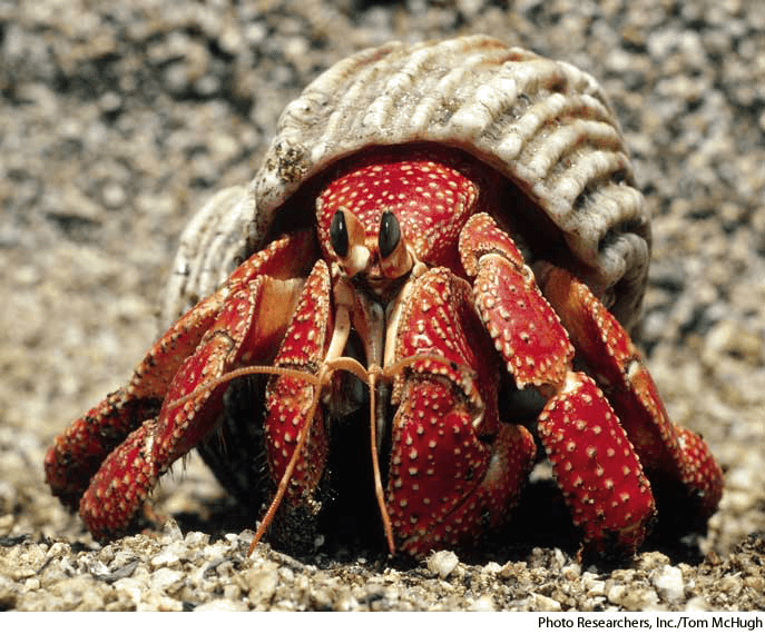 hermit crabn.(名词) hermit crabstrawberry land hermit crabCoenobita perlatus- Any of various crabs belonging to a group within the order Decapoda that protect their soft, unarmored abdomens by occupying and carrying about the empty shells of snails or other univalve mollusks.寄居蟹:属于十足目动物某一群的任何一种蟹,该蟹占据或背负蜗牛或其它单壳软体动物的空壳来保护其柔软无甲的腹部