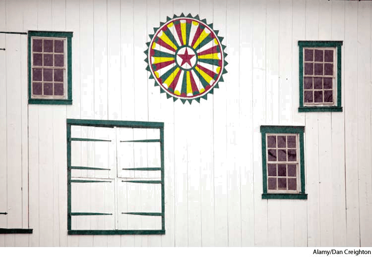 hex signn.(名词) hex sign- Any of various painted round signs incorporating designs, such as stylized stars, rosettes, or wheels, thought to be magical. These signs were painted on barns, especially by the Pennsylvania Dutch, to ward off misfortune or evil spells.巫符:各种画出来的圆形符号,体现一些图案如格式化的星图、玫瑰花形物或车轮。据信,这些图案有魔力。他们被画在谷仓上来防止不幸或不祥的符咒,此风俗在美国宾夕法尼亚的德裔宾夕法尼亚人中尤为流行