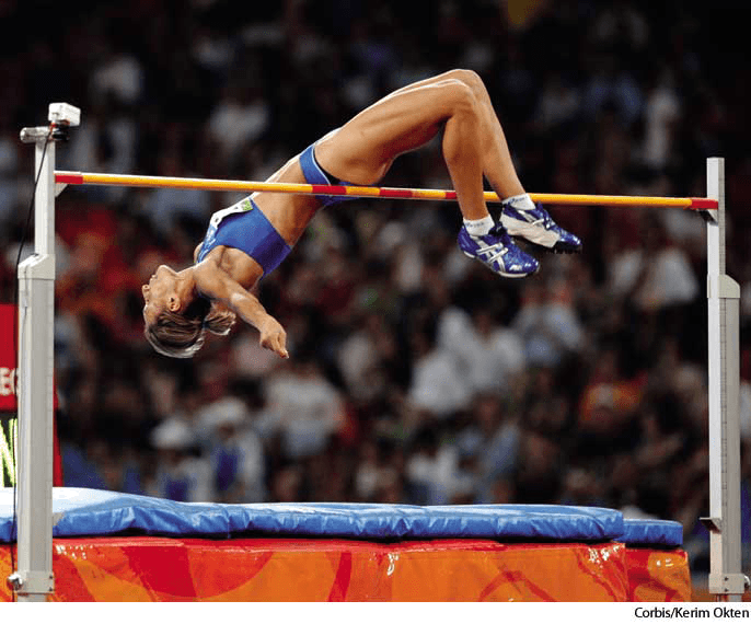 A jump for height made over a horizontal bar in a track-and-field contest.
