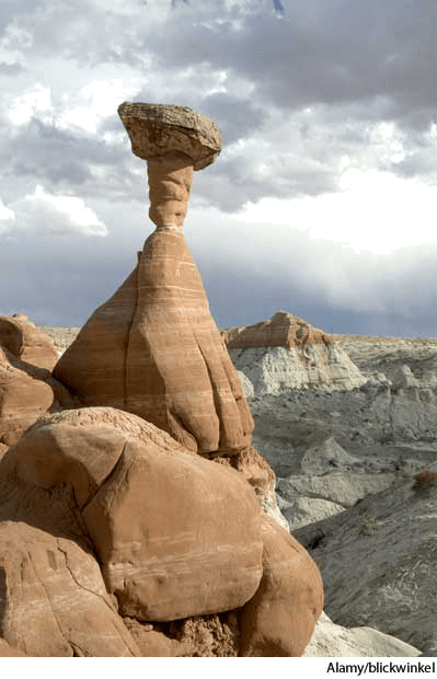 1. Geology A column of eccentrically shaped rock, produced by differential weathering.【地质学】 天然怪岩柱:因受特定的风化侵蚀而形成的形状怪异的岩石