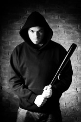 A hooligan weilding a bat.