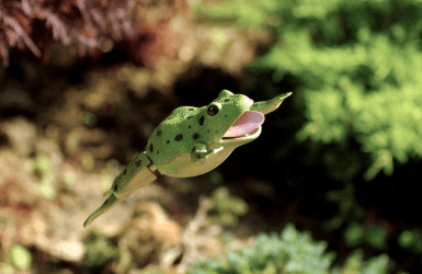 A frog hops.