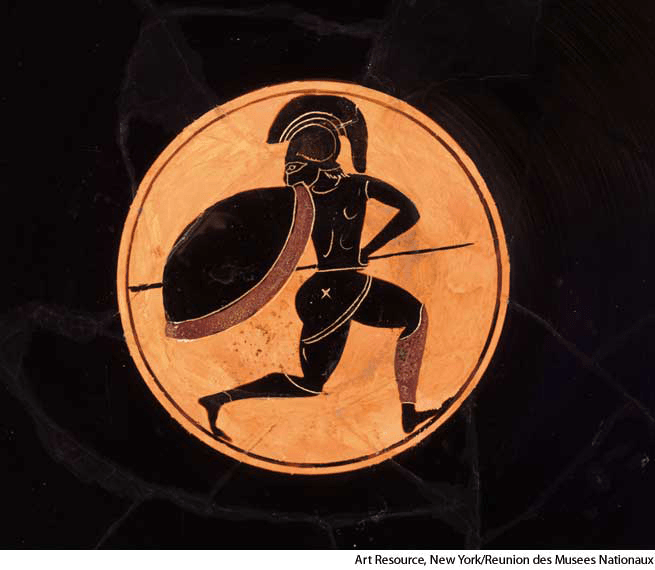 hop·lite AHD[hŏpʹlīt'] D.J.[ˈhɒpˌlaɪt]K.K.[ˈhɑpˌlaɪt]n.(名词) hoplitedetail of a c. 520 bc cup by the Oltos Painter(active c. 525-500 bc)- A heavily armed foot soldier of ancient Greece.重甲步兵:古希腊装备着重武器的步兵