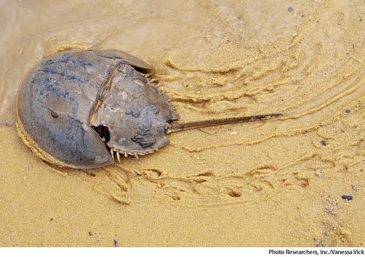 horseshoe crabn.(名词) horseshoe crabLimulus polyphemus- Any of various marine arthropods of the class Merostomata, especiallyLimulus polyphemus or Xiphosura polyphemus of eastern North America, having a large, rounded body and a stiff, pointed tail. Also called king crab ,limulus 马蹄蟹,鲎:一种肢口纲的海生节肢动物,尤指产于北美东部的鲎目亚类 或 剑尾亚纲 ,体型大而呈圆形,尾巴尖而坚硬 也作 king crab,limulus