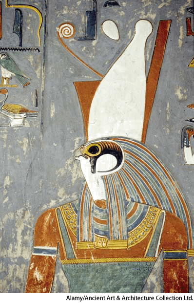 Ho·rus AHD[hôrʹəs, hōrʹ-] D.J.[ˈhɔːrəs, ˈhəʊr-]K.K.[ˈhɔrəs, ˈhor-]n.Mythology(名词)【神话】 Horusdetail of a wall painting of Horus in the Tomb of Horemheb, Valley of the Kings, near Luxor, Egypt- The ancient Egyptian god of the sun, son of Osiris and Isis, represented as having the head of a hawk.霍鲁斯:古代埃及的太阳神,欧塞利斯和艾西斯(司丰饶的女神)之子,被描绘成长着鹰的头