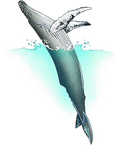 1. A baleen whale(Megaptera novaengliae) having a rounded back and long, knobby flippers. Humpback whales communicate using complex, distinctive songs that identify individuals and play an important role in mating. 座头鲸:一种(座头鲸属 座头鲸) 有圆背和长而多节的鳍状肢的须鲸。座头鲸复杂而与众不同的歌声可以使它们互相识别,且在求偶过程中起重要作用