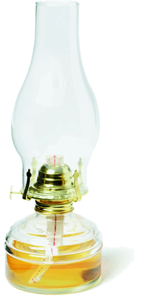 A lamp with a candle, an oiled wick, or an electric bulb protected by a glass chimney.