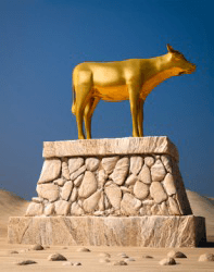 An idol in the shape of a golden calf.