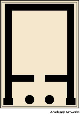 1. Having a recessed portico with a row of columns between the antae, as in some Greek temples.相对柱饰:在后侧间凹陷的门廊处有着成排的柱子,例如在某些希腊神庙中便有此种装饰