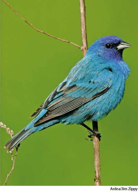 靛蓝彩鵐) 产于中北美洲,雄鸟具有深蓝色的羽毛