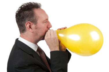 A man inflates a balloon.