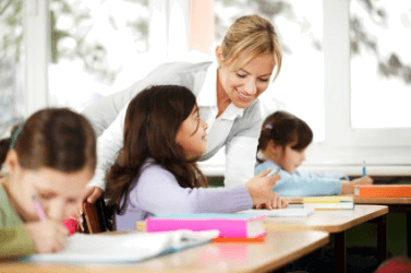 A teacher instructs her class.
