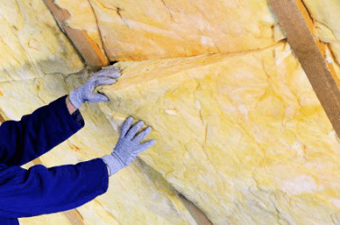 A man installs insulation in a building.