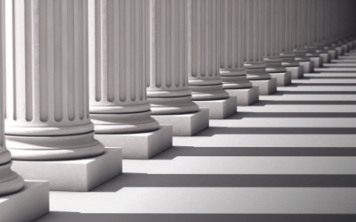 The shadows of the columns come in intervals.