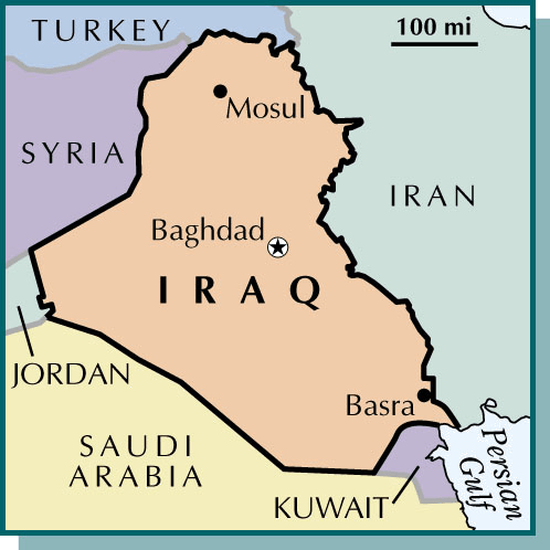 1. A country of southwest Asia. Site of a number of flourishing ancient Mesopotamian civilizations, Iraq fell to the Arabs (7th century) and later to the Ottoman Turks (16th century). It was established as an independent kingdom in 1921 and became a republic after the assassination (1958) of Faisal II. Baghdad is the capital and largest city. Population, 15,584,987.伊拉克:亚洲西南部国家。它是许多繁荣的古代美索不达米亚文明的所在地,先是落入阿拉伯人之手(7世纪),而后又被奥斯曼土耳其人所占领(16世纪)。1921年它成为一个独立的王国,在费萨尔二世被暗杀后(1958年)成为一个共和国。巴格达是其首都和最大城市。人口15,584,987
