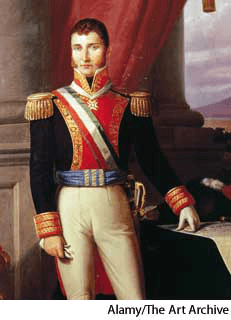 I·tur·bi·de AHD[ē't‹r-bēʹdā, ē-t‹rʹvē-Yĕ] Agustín de (1783-1824) D.J.[ˌiːtʊəˈbiːdeɪ, iːˈtʊəviːðe]K.K.[ˌitʊrˈbide, iˈtʊrviðɛ]NONE(无词性) Agustín de Iturbidec. 1822 portrait by an unknown artist- Mexican revolutionary leader who established Mexican independence from Spain (1821) and served as emperor of Mexico from 1822 to 1823, when he was overthrown by a liberal counterrevolution.伊图尔维德,奥古斯丁·德:(1783-1824) 墨西哥独立运动的领导人,他使墨西哥从西班牙统治中获得独立(1821年),从1822年到1823年自立为墨西哥的皇帝,后被一个自由主义的反革命组织推翻
