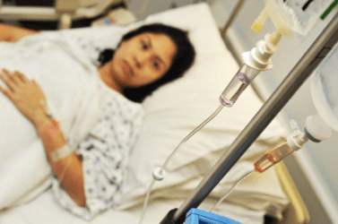 A woman with an IV.