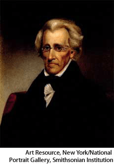 Jackson, Andrew Known as "Old Hickory.”(1767-1845)NONE(无词性) Andrew Jacksonminiature portrait by JamesTooley, Jr. (1816-1844) afteran 1840 portrait byEdward Dalton Marchant(1806-1887)- The seventh President of the United States (1829-1837), who as a general in the War of 1812 defeated the British at New Orleans (1815). As president he opposed the Bank of America, objected to the right of individual states to nullify disagreeable federal laws, and increased the presidential powers.杰克逊,安德鲁:(1767-1845) 美国第七任总统(1829-1837年),是1812年的战争中美军的将军,于1815年在新奥尔良打败英军。任总统期间他反对美洲银行,反对各州拥有把相抵触的联邦法律废除的权力,增大了总统的集权