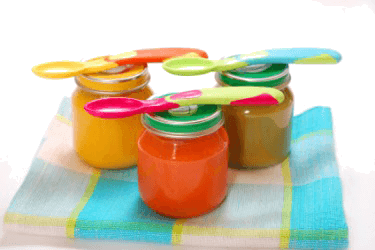 Baby food in jars.