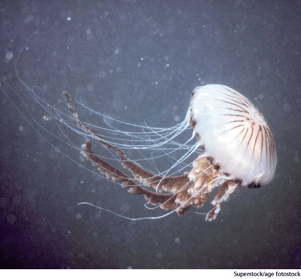 2. Any of various similar or related coelenterates.水母类动物:各种与腔肠动物相似或有关的种类