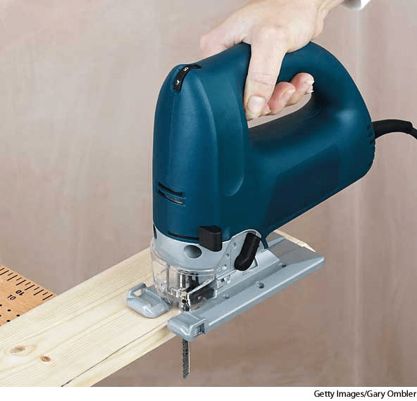 A usually power-driven saw with a narrow vertical blade, used to cut sharp curves.