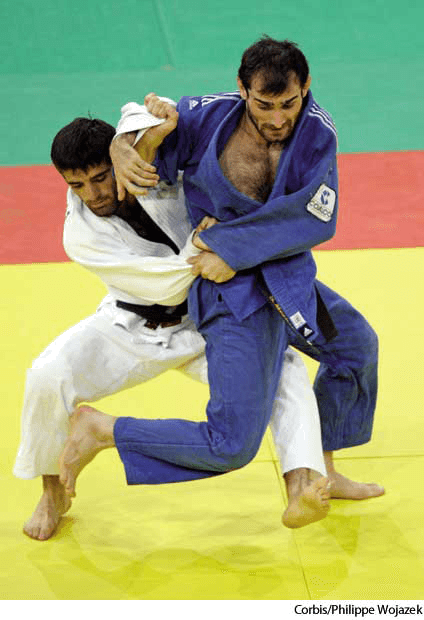 ju·do AHD[jo͞o′dō] D.J.[ˈdʒuːdəʊ]K.K.[ˈdʒudo]n.(名词) judoSalamu Mezhidov of Russia (right) and David Kevkhishvili of Georgia (left) at the 2006 Judo World ChampionshipsParis, France- A sport and method of physical training similar to wrestling, developed in Japan in the late 19th century and using principles of balance and leverage adapted from jujitsu.柔道,现代柔术:类似摔跤的一种运动及健身方式,19世纪晚期产生于日本,采用柔道的平衡原理及杠杆原则