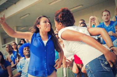 Two sports fans having an argument.